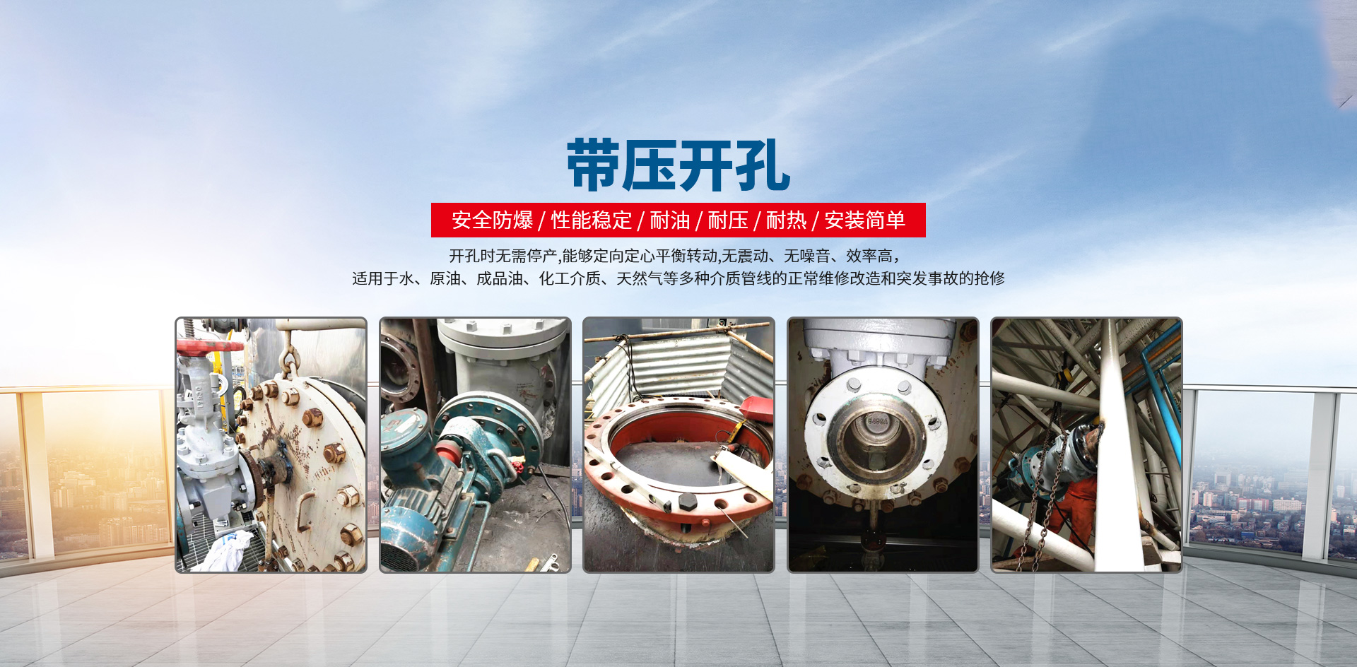 帶壓開孔的操作程序:將閘閥開到最大口徑。手輪順時針旋轉進刀,中心鉆(鉆頭)頂到主管道時,手輪反轉半周(防止打刀)。啟動液壓泵站或電機,順時針緩慢轉動手輪進刀,手...